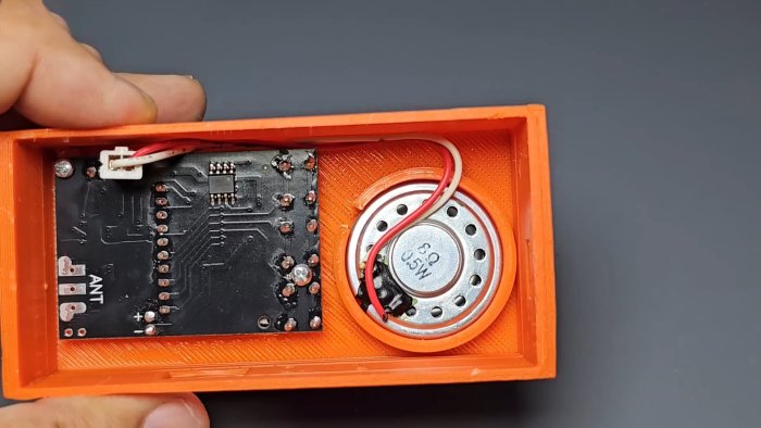 - Установите модуль и динамик в корпус, подключив динамик к SP+ и SP-.