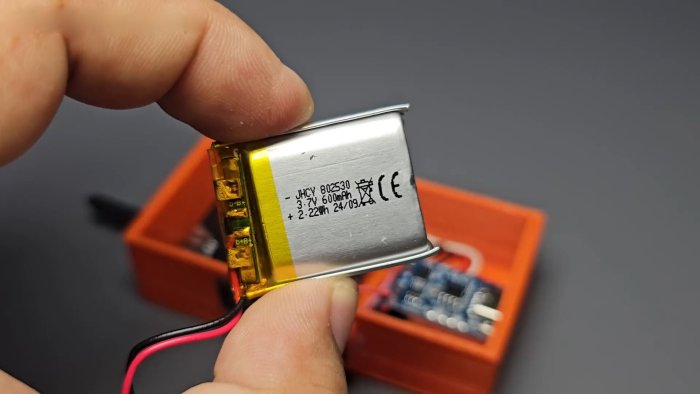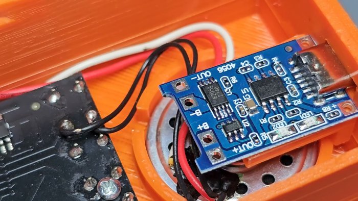 - источник питания — Li‑ion аккумулятор и модуль зарядки TP4056 для удобства зарядки;