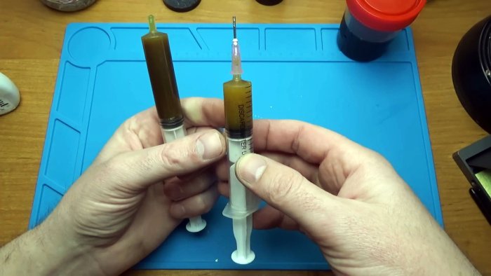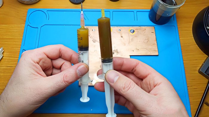 А вот гелевый — просто песня для точечной пайки. Не дымит, не бурлит как первый вариант. Удобно разливать по бутылкам с тонким носиком.