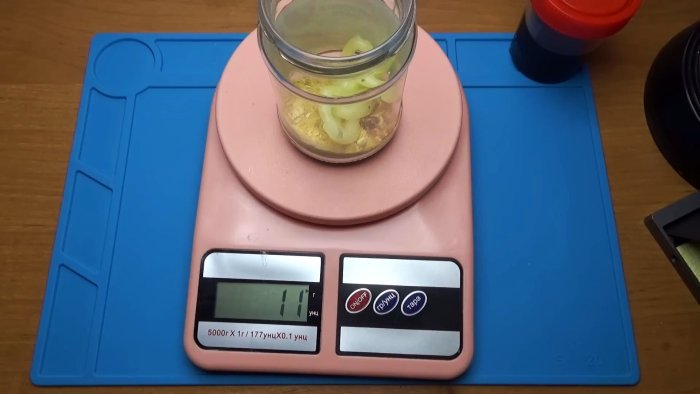Берем те же 20 грамм канифоли, превращаем в порошок. Добавляем 10 грамм вазелина и 5 грамм подсолнечного масла. Ставим на водяную баню на четверть часа.