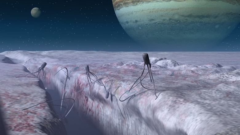 Особенно перспективны подледные океаны: тёплая солёная вода под толстым слоем льда создаёт стабильные условия для микробной жизни. Лёд экранирует радиацию, а отсутствие проникновения солнечного света не мешает — на Земле множество микроорганизмов прекрасно живут в полной темноте.