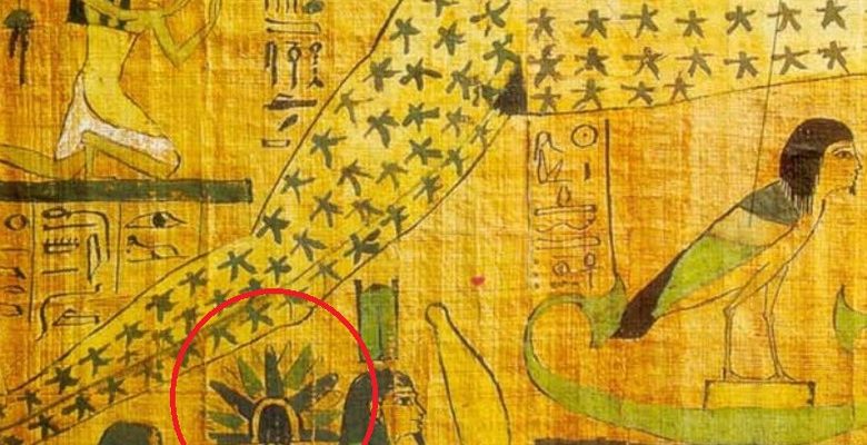 В одном из экспонатов Каирского музея заметили рисунок на древнем папирусе, который некоторые интерпретируют как изображение НЛО, будто совершившего посадку