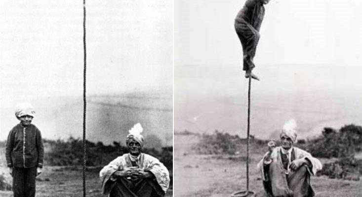 Индийская «чудо-веревка» веками будоражила людей: на шоу бродячих факиров обычная веревка внезапно поднималась в небо и казалась парящей.