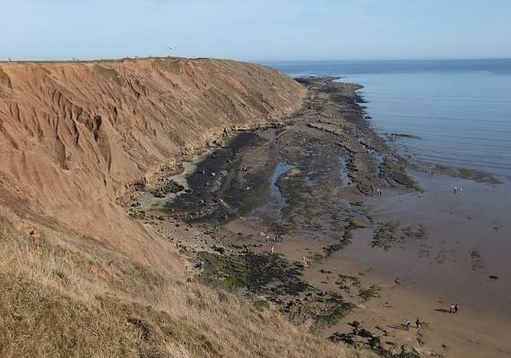На северном побережье Англии, в графстве Северный Йоркшир, выступает в море узкий песчано-известняковый полуостров Файли Бригг — место, где геология переплетается