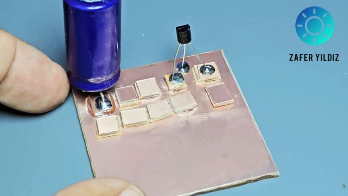 Нижний слой служит общим проводом. На верхние площадки паяются компоненты.