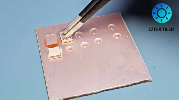 На одном канцелярским ножом прорежьте сетку. Аккуратно разломите заготовку на изолированные квадраты. Приклейте их суперклеем ко второму листу текстолита, формируя контактные площадки. Основа готова.
