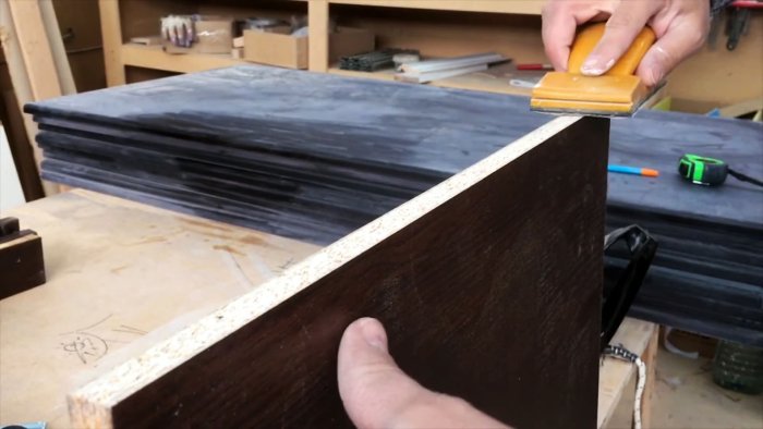 Когда пропитка высохнет, снова шлифуют — при впитывании клея поверхность может слегка подняться и требовать коррекции. Важно довести край до ровного, гладкого состояния: от этого зависит, как ляжет кромка и не будет ли она «волниться» при нагреве.