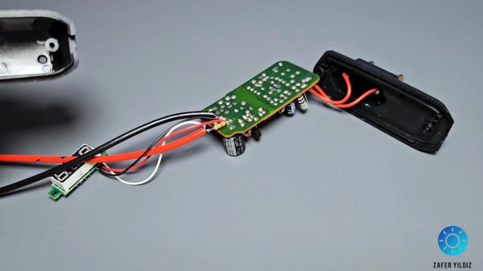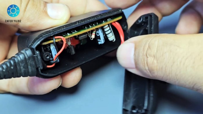 - Откройте корпус зарядного устройства — обычно нужно выкрутить два боковых винта и аккуратно разъединить половинки корпуса.