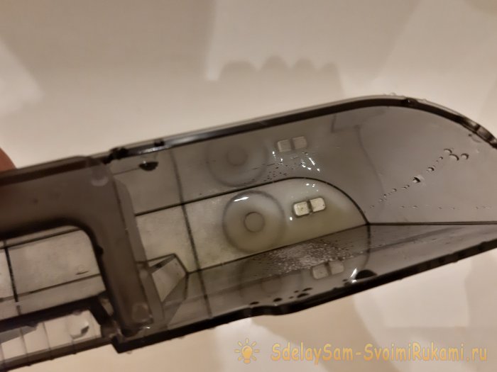 Этот способ безопасен для пластика и не требует химии. В отличие от риса, который тоже используется как абразив, соль растворяется и не застревает в щелях, а остатки легко смываются.