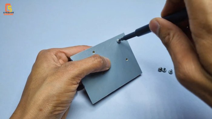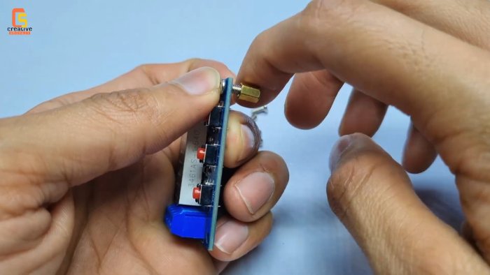 - Приклейте бокс для АКБ рядом с платой на суперклей.
