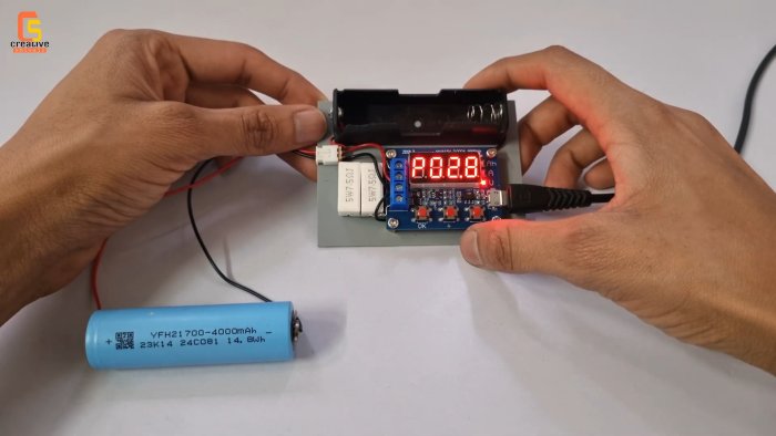 Установите аккумулятор в бокс. Подключите питание к модулю через разъем micro-USB. Выберите конечное напряжение разряда кнопками (обычно 3.0В для Li-ion) или используйте авторежим. Нажмите пуск.