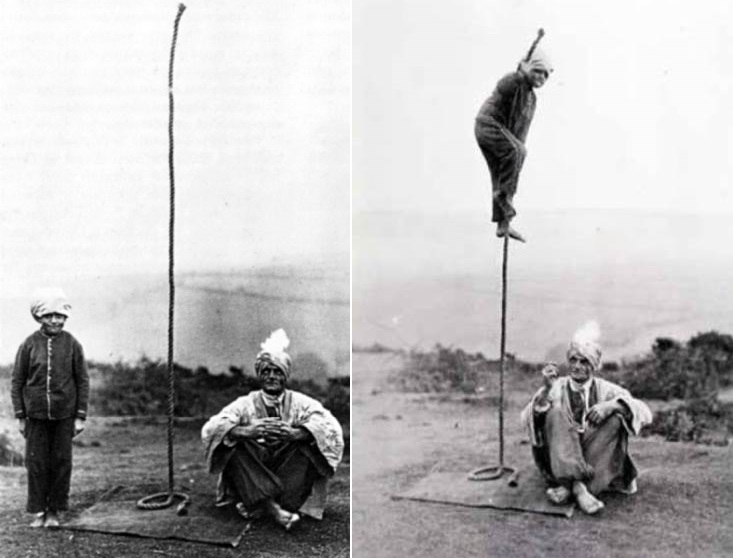 Индийская «чудо-веревка» веками будоражила людей: на шоу бродячих факиров обычная веревка внезапно поднималась в небо и казалась парящей. Истории о трюке породили массу догадок — от гипноза до магии — но за эффектом скрывалась хорошо продуманная театральная постановка.