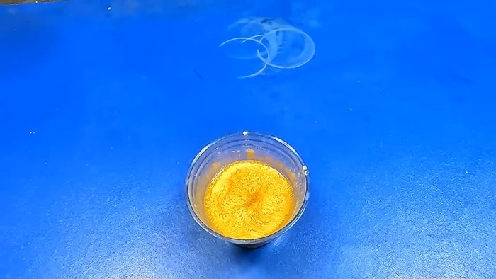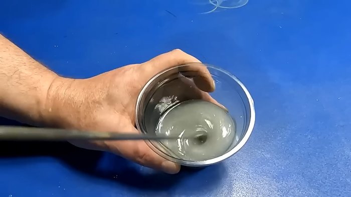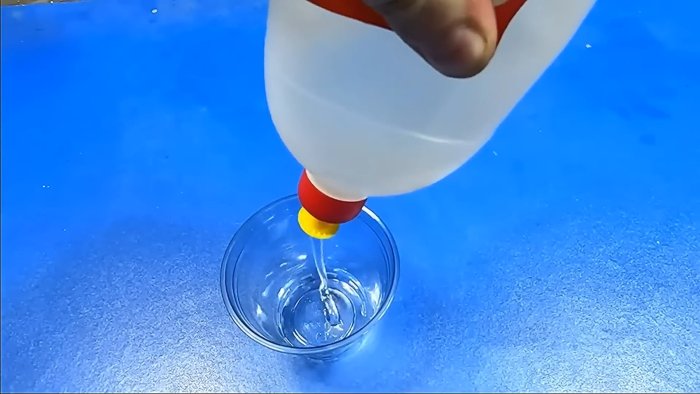 - К растворённому пластику добавьте примерно 30% эпоксидной смолы и 2–4% отвердителя от массы смолы.