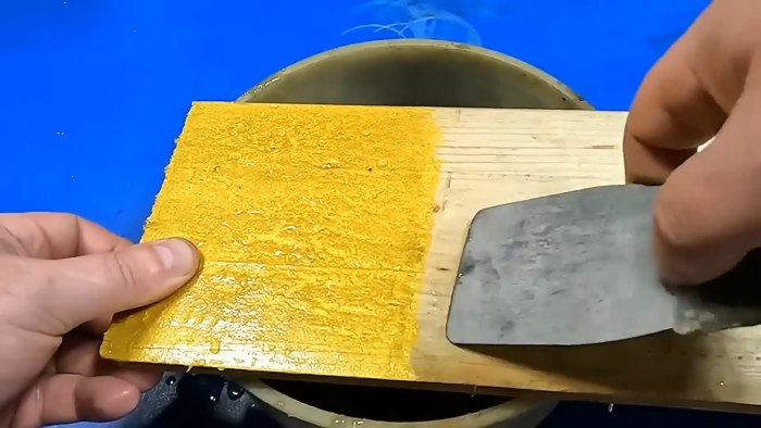 - После растворения объём массы увеличится: полученную массу можно использовать для заделки отверстий или склейки элементов.