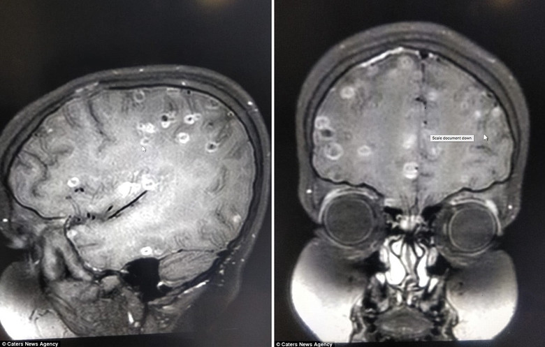 Сначала состояние ребёнка расценили как обычную кисту головного мозга и назначили высокие дозы стероидов, но лечение не давало ожидаемого эффекта. После дополнительного обследования специалисты установили, что киста на деле содержит личинки свиного цепня — паразита, которому человеком бывает конечный хозяин.