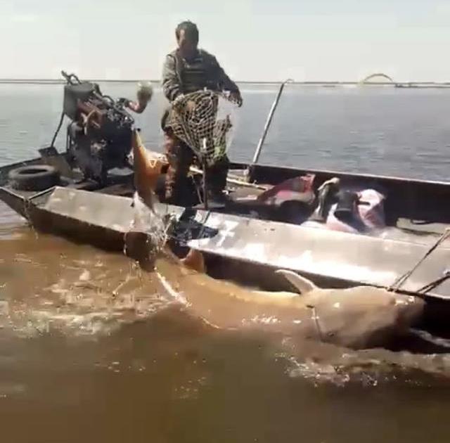 Трое рыбаков в устье Амура не ожидали такой находки: в их сеть попалась калуга длиной 3,59 метра и весом 513 кг — редкий и ценный улов.