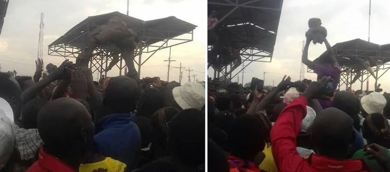 У моста Камукуйва в округе Бунгома в Кении собралась толпа после трагического ДТП, где погибли 12 членов одной семьи. 10 января местный шаман провёл ритуал и вытащил из-под мостовой конструкции двух необычных существ, заявив, что они стали причиной аварии.